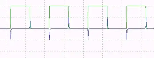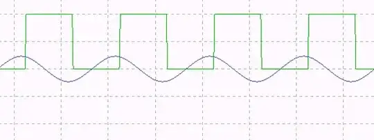 The green waveform is the switch control and the blue waveform is the demodulated signal (the frequency deviation). After audio-frequency filtering on the output, we get a more ordinary tone, though with a delay introduced by the filter:
