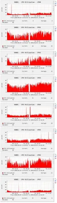 Now, this is a dedicated server, so the only thing running on it is SQL Server 2008 (and the built-in full text indexing, which we use pretty heavily), so I'm not sure why the CPU usage would be so asymmetric. Thoughts?