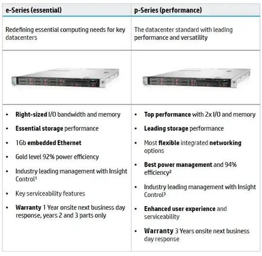 1Shouldn't be saying this but they're getting rid of the DL380e model in the Gen9 range and moving it down to being a 1xx series box - they've not sold well (the DL380p remains the best selling server of all makes/models). – Chopper3 Jul 15 '14 at 09:22