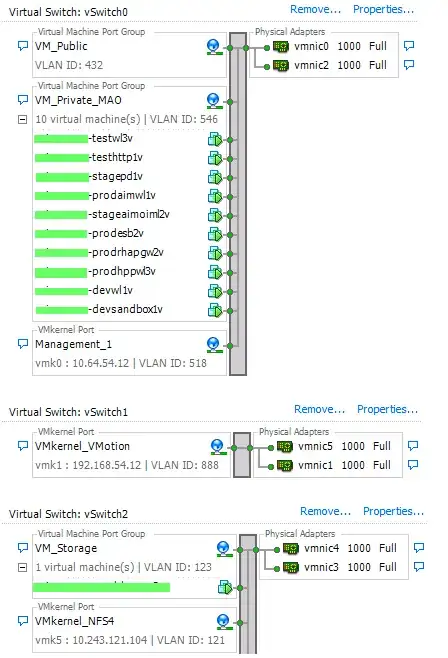 • unfortunately I had discovered the issue in our prod servers, and haven't had time to replicate the issue in one of our other environments, but I can confirm your first thought: Both vmguest1 and 3 can ping host1 and 2, but not each other. The ` on eth0` actually shows up as ` on bond0`. – Aaron R. Aug 25 '14 at 20:55