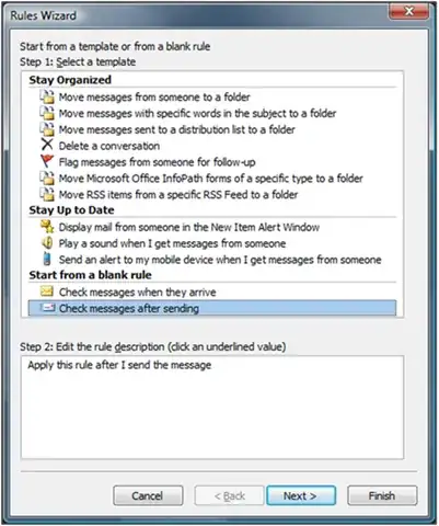 Click Next again if you want ALL outgoing messages to be copied to your Inbox.