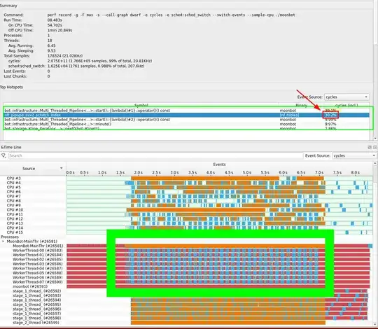 It gets extra difficult when I try to open the same perf recording in perf-report. I never get to even see it. This makes me believe I actually am missing some flags for perf report to tell it to also show those. By now, I have installed the linux kernel image with debug symbols and pointed perf to this using -k, but that doesn't make a difference. Anyway: how would HotSpot be able to show them without ever having those kernel debug symbols?