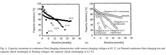* K. Asakuraa, M. Shimomurab, Т. Shodai, "Study of life evaluation methods for Li-ion batteries for backup applications", Journal of Power Source, 2003, PDF: http://lib.gen.in/69cb086b10cb54303a7cf4af98754216.pdf