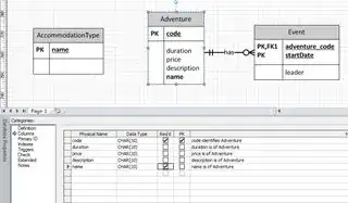 However, what I can't figure out is how to make the relationship line from Adventure to AccomodationType be the same as the one from Event to Adventure, without making that relationship part of the PK of adventure. When I look at the 'Miscellaneous' properties of that relationship line, I want it to be: