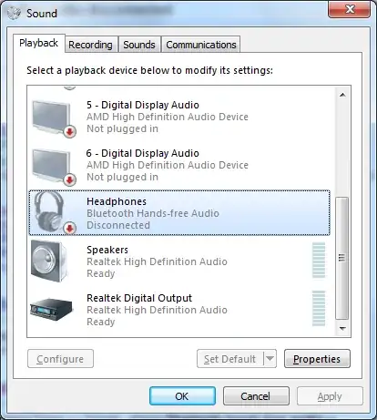 Now my headset appears in both Playback and Recording, but shows as Disconnected. The device is on, paired, and appears under "Device Manager" as having no problems. I right-clicked and installed both the Hands-free Telephony and Headset services.