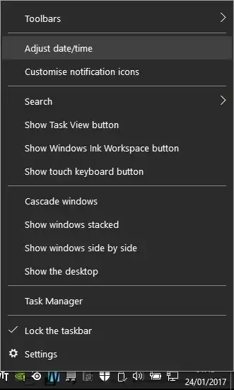 - Right click on the date and time area on the taskbar