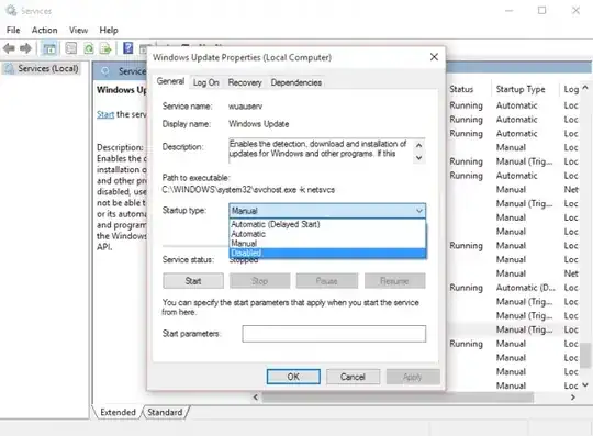 Set-Service wuauserv -StartupType Disabled