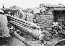 ![]() Australian gun crew in action in the Ypres sector, 28 September 1917 | |