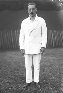 The outdoors tennis competition saw 70 players enter from 12 nations. However, Great Britain did not enter any competitors as the dates of the outdoor competition clashed with the 1912 Wimbledon Championships, despite attempts by the British authorities to convince the Olympic organizing committee to change the dates. Other noted tennis players refused to compete at the Olympics and instead attended Wimbledon.[130] The gold and silver medals in the gentlemen's singles ended up being decided between two South Africans, with Charles Winslow and Harold Kitson playing each other. Winslow won the match and the gold medal, 7–5, 4–6, 10–8, 8–6.[131] The duo also competed as a pair in the gentlemen's doubles and took the gold medal, beating the Austrians Felix Pipes and Arthur Zborzil.[132] Marguerite Broquedis of France defeated Dorothea Koring of Germany in the ladies' singles for the gold medal.[133] In the mixed doubles Koring teamed up with Heinrich Schomburgk to win the gold, the duo defeating Sigrid Fick and Gunnar Setterwall of Sweden in the final.[134]