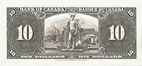 This was the first series of bilingual Canadian banknotes,[4] as the 1935 Series was a dual-language series with French banknotes issued in Quebec and English banknotes issued in the rest of Canada.[2] This series was created because of the introduction of the Bank of Canada Act, which required Canadian banknotes to be bilingual.[5] In this series, English was always on the left. The 1937 banknote series was followed by the 1954 Canadian Landscape series.