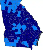 2006 Georgia Democratic gubernatorial primary. Dark blue indicates Taylor, while light blue indicates Cox.[1]