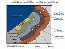 Between 2005 and 2007, Palestinian groups in Gaza fired about 2,700 locally made Qassam rockets into Israel, killing four Israeli civilians and injuring 75 others. During the same period, Israel fired more than 14,600 155 mm artillery shells into the Gaza Strip, killing 59 Palestinians and injuring 270. According to the Office for the Coordination of Humanitarian Affairs, between 2005 and 2008, 116 Israelis, including civilians and Israeli security forces, which includes Israeli police, Israeli Border Police and members of the armed services, were killed in both Israel and the Palestinian Territories in "direct conflict related incidents" and 1,509 were injured.[95] During this time, 1,735 Palestinians, including civilians and militants from various groups, were killed and 8,308 wounded in "direct conflict related incidents".[95]