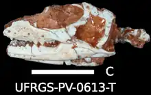 - Pinheiro, F. L.; Silva-Neves, E.; Da-Rosa, A. A. (2021). "An early‐diverging procolophonid from the lowermost Triassic of South America and the origins of herbivory in Procolophonoidea". Papers in Palaeontology. 7 (3): 1601–1612. doi:10.1002/spp2.1355. S2CID 233797716.