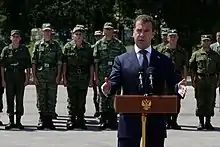The base originated from the 131st Separate Motor Rifle Brigade, which was a unit of the Soviet Army and of the Russian Ground Forces. Following the Russo-Georgian War of 2008, it was decided that a permanent Russian military base was needed.[3] On 1 February 2009, the brigade was reorganized and the 7th Krasnodar Red Banner Order of Kutuzov and Red Star Military Base was established. On 17 February, Russian President Dmitry Medvedev and Abkhazian leader Sergey Bagapsh signed an agreement on a unified Russian military base on the territory of Abkhazia.[4][5]