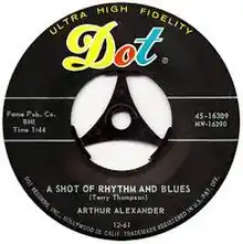 "A Shot of Rhythm and Blues" is a song written by Terry Thompson[1] and first recorded by US soul singer Arthur Alexander. It was originally released in the United States in 1961 and in the United Kingdom the following year, as the B-side of "You Better Move On".