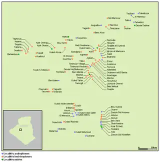 Gurara and Tuwat are the only Berber languages to change r in certain coda positions to a laryngeal ħ;[2] in other contexts it drops r, turning a preceding schwa into a,[3] and this latter phenomenon exists also in Zenata Rif-Berber in the far northern Morocco.
