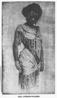 Aida Overton Walker (February 14, 1880 – October 11, 1914), also billed as Ada Overton Walker and as "The Queen of the Cakewalk", was an American vaudeville performer, actress, singer, dancer, choreographer, and wife of vaudevillian George Walker. She appeared with her husband and his performing partner Bert Williams, and in groups such as Black Patti's Troubadours. She was also a solo dancer and choreographer for vaudeville shows such as Bob Cole, Joe Jordan, and J. Rosamond Johnson's The Red Moon (1908) and S. H. Dudley's His Honor the Barber (1911). Aida Overton Walker is also well known for her 1912 performance of the "Salome" dance at Hammerstein's Victoria Theatre. This was Aida's response to the national "Salomania" craze of 1907 that spread through the white vaudeville circuit.[1]