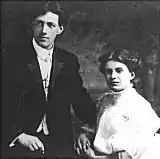 Harold McPherson followed her to bring her home, but changed his mind after seeing her preaching, and joined her in evangelism, setting up tents for revival meetings and preaching.[24] The couple sold their house and lived out of their "Gospel Car". Harold McPherson, despite his initial enthusiasm, began leaving the crusade for long periods of time in the late 1910s. Initially attempting to launch his own career as a traveling evangelist, he eventually returned to Rhode Island and his secular job. The couple were divorced in 1921.[25]