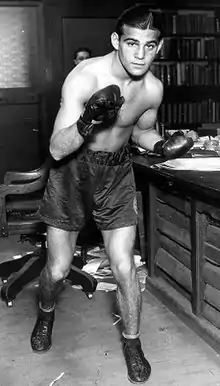 Debuting as a professional in Brooklyn with a knockout of Jim Reilly on July 2, 1927, Singer went undefeated in his first two years as a professional.[2][5] His affectionate New York fans dubbed him "The Bronx Beauty" for both his looks and exceptional grace in the ring. Though Singer was young and had stayed far distant from crime, his exceptional winning record caught the eye of the New York mob, who hoped to bring him to a championship as quickly as possible. Most reference books on Singer noted that in 1928, two men came to his training camp and asked to meet with his manager Harry Drucker. Accepting a ride with the men, Drucker was never heard from again, and Singer came under the influence of the mob, who many believed fixed a few of his early fights.[6] He performed exceptionally well against Lou Moscowitz at Madison Square Garden and Pete Zivic at St. Nicholas in late 1928, knocking them out in five and six rounds respectively. In his first real feature match on September 14, 1928, Singer and the exceptionally skilled Tony Canzoneri, former holder of the featherweight world title, battled to a 10-round draw, satisfying an impressed audience and spotlighting Singer as a potential feather or lightweight contender. In his career, Singer won 61 of 72 pro fights (25 by KO), drawing twice, and losing nine.