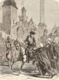 Follow-up clashes rectify Suvorov's situation: the battle of Lanckorona one day after an incident at Tyniec, where Dumouriez, the future hero of the French Republic, was severely defeated; the combat of Zamość on 22 May 1771;[41] the battle of Stołowicze; and the siege of the Wawel Castle (Kraków Castle), where the French and the szlachta, under the leadership of Brigadier Marquess Gabriel de Claude, made a sortie from the fortifications, and a force of Tyniec moved towards them – the Poles and their French allies were "defeated by brutal shooting and put to flight",[42] paving the way for the first partition of Poland between Austria, Prussia and Russia.[43] Suvorov meanwhile reached the rank of major-general.[9]