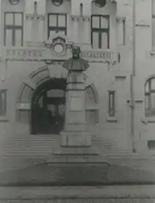 In 1935, a bronze statue of Constantinescu was unveiled before the Palace of Agriculture in Brăila. The work of Oscar Späthe, it honored his contribution to the building. The monument was demolished by the communist regime and replaced by parking spaces.[11][12] A street in Bucharest, called “Câmpina” under communism, bears his name.[13]