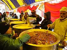 En route to the cave, various non-governmental organisations have set up food supply and resting tents called pandals which are available for free to the pilgrims. Near the shrine, hundreds of tents which are erected by locals can be hired for a night's stay.[50]