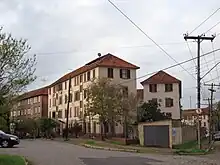 Soon Eclecticism would predominate. An imposing example is the Public Market, which replaced the earlier, smaller market. It was planned by engineer Frederico Heydtmann in 1861. The construction had its cornerstone laid in 1864, being inaugurated in 1869. The complex underwent substantial modification in the 1910s with the addition of a second floor, while preserving the style.[7] Of similar stylistic characterization are the Museu do Comando Militar do Sul ("Museum of the Southern Military Command"), a large building inaugurated in 1867, built by master-operator Manoel Alves de Oliveira as an annex to the War Arsenal;[12] the building of the 8th Military Service Circuit, erected on an earlier construction that housed the Royal Stores; and the Provisional Palace, whose design, by engineer Francisco Nunes de Miranda, was later modified by engineer Antônio Mascarenhas Telles de Freitas. Work on the Provisional Palace began in 1857 and the project included structural solutions that were advanced for the time, such as the roof slab with a system of double "T" steel profiles combined with compression bricks, forming small arches. Another imposing eclectic building was the House of Correction, later demolished, of neoclassical distribution and detailing that referred to military architecture.[13] One of the grand examples of Porto Alegre's eclecticism is the historical complex of the São Pedro Psychiatric Hospital, which according to Institute of Historical and Artistic Heritage of the State of Rio Grande do Sul (IPHAE) technicians is:[14]