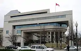 Postmodern architecture is a broadly defined architectural style that emphasizes the use of glass, large windows, and generally greater variety of form than Modernism allowed for. Because of the broad definition of this type of architecture, many buildings built in Washington, D.C. in the latter decades of the 20th century through recent years can be said to be Postmodern. Among these buildings are the headquarters of the International Financial Corporation near Foggy Bottom, the Embassy of Spain in the West End, the World Bank Group headquarters building located Downtown, and the Embassy of Canada near the Capitol.