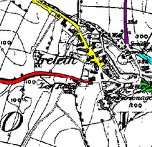 It is thought the village was included in the Domesday Book, compiled soon after the Norman Conquest, but there is debate over which of the entries for the Furness area in William the Conqueror's census actually refers to modern day Ireleth.[3] Several sources name a settlement called Gerleuuorde, part of the Manor of Hougun, as the correct entry but there is no conclusive evidence to support this, not least because of the discrepancies in spelling.[3] Samuel Lewis' A Topological Dictionary of England, written 1848, posits a different contender as the true Ireleth. He claimed Ouregrave referred to the village because of the existence of a mill named Orga-Mill, but he conceded this was also conjecture. Lewis' full text on Ireleth is below.[8]