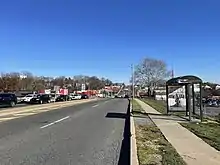 At the intersection with South Bishop Avenue, the road becomes a four-lane divided highway and enters Upper Darby Township, where the name changes to Baltimore Avenue. The median turns into a center left-turn lane as the road passes more commercial establishments, becoming the border between the borough of Clifton Heights to the north and Upper Darby Township to the south. Baltimore Avenue fully enters Clifton Heights and passes through residential and commercial areas as a two-lane undivided road. After passing through the commercial downtown, the road crosses SEPTA's Route 102 trolley line at the Baltimore Pike station and runs past more businesses. Baltimore Avenue crosses the Darby Creek into the borough of Lansdowne and heads into wooded areas of homes, curving to the east. The road passes through the commercial downtown of Lansdowne, where it intersects Lansdowne Avenue, before heading past more businesses, crossing back into Upper Darby Township. Baltimore Avenue crosses the abandoned Newtown Square Branch railroad right-of-way and becomes the border between the borough of East Lansdowne to the north and Upper Darby Township to the south, lined with more businesses. The road comes to an intersection with US 13 at Church Lane, at which point SR 2016 ends and US 13 turns east to join the road, which changes names to Baltimore Pike. Baltimore Pike fully enters Upper Darby Township again, passing between Fernwood Cemetery to the north and urban residential and commercial development to the south, becoming the border between Upper Darby Township to the north and the borough of Yeadon to the south.[2][4]