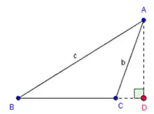The extended base of a triangle (a particular case of an extended side) is the line that contains the base. When the triangle is obtuse and the base is chosen to be one of the sides adjacent to the obtuse angle, then the altitude dropped perpendicularly from the apex to the base intersects the extended base outside of the triangle.