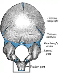 ![]() Occipital bone outer surface, at birth (basilar part is at bottom) | |