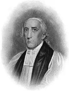 Moore was the 9th bishop in the ECUSA, and was consecrated in St. Michael's Church, Trenton, New Jersey by Bishops William White, Thomas John Claggett, and Abraham Jarvis.[8] That same year, Moore was elected President of Columbia College, as the compromise choice of a board of trustees deadlocked between Episcopal and non-Episcopal members. A contemporary explained the choice thusly: "While he was a true, consistent, and I may add, an uncompromising Episcopalian, he was neither an aggressive or prescribing one." Because of his church responsibilities he neither taught nor was involved in the details of administration.[9]