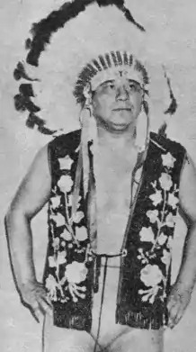 With George Becker, Two Rivers held his first championship belt. On April 6, 1959, they won the Southern version of the NWA Southern Tag Team Championship by defeating Alberto and Enrique Torres. They held the title for three months before dropping them to the team of Mr. Moto and Duke Keomuka.[6] After losing the championship, Two Rivers considered moving to Calgary, Alberta, to work for Stampede Wrestling. Ray Napolitano, a wrestler from the United Kingdom, told him to consider moving overseas. He flipped a coin to decide and it chose the UK, where he began working in October 1959.[1][2]