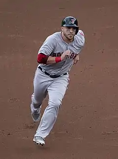 In 1901, the minor Western League, led by Ban Johnson, declared itself to be equal to the National League, then the only major league in baseball.[23] Johnson had changed the name of the league to the American League prior to the 1900 season.[24] In 1901, the league created a franchise in Boston, called the "Boston Americans", to compete with the National League team there.[25][26]