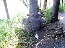 Because of the value of burls, ancient redwoods in national parks in the Western United States have recently been poached by thieves for their burls, including at Redwood National and State Parks.[2] Poachers often cut off the burls from the sides of the trunks using chainsaws, which exposes the tree to infection and disease, or fell the entire tree to steal burls higher up.[2] Because of the risk of poaching, Jeff Denny, the state park's redwood coast sector supervisor, encourages those buying burl to inquire where it came from and to ensure it was obtained legally. Legal acquisition methods for burl include trees from private land cleared for new development and from lumber companies with salvage permits.[2]