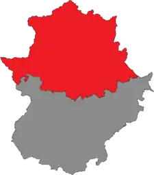 The constituency was created as per the Statute of Autonomy of Extremadura of 1983 and was first contested in the 1983 regional election. The Statute provided for the two provinces in Extremadura—Badajoz and Cáceres—to be established as multi-member districts in the Assembly of Extremadura, with this regulation being maintained under the 1987 regional electoral law. Each constituency is entitled to an initial minimum of 20 seats, with the remaining 25 being distributed in proportion to their populations. The exception was the 1983 election, when each constituency was allocated a fixed number of seats: 35 for Badajoz and 30 for Cáceres.[2][3][4]