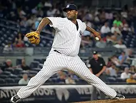 ![]() Sabathia pitching with the Yankees in 2016 | |