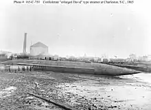 "David" came to be the generic term for any torpedo boat resembling this David.[1] An unknown number of torpedo boats of the David-type were built for and operated by the CSN.[1] When Federal forces captured Charleston in February 1865, they found, incomplete, a much larger David, with a length of about 160 ft (49 m) and designed as a cargo-carrying blockade-runner.[7] This vessel was taken to Washington DC.[7]