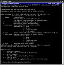 In Microsoft Windows, cacls and its replacement, icacls, native command-line utilities capable of displaying and modifying the security descriptors on folders and files.[1][2] An access-control list is a list of permissions for securable object, such as a file or folder, that controls who can access it. The cacls command is also available on ReactOS.