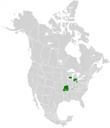 They have populations in the United States in southern Michigan, Ohio, Missouri, southern Wisconsin and northern Arkansas. There are also small populations in Iowa and Kentucky. They are most often seen in bogs, marshes, swamps and wet meadows. The species is endangered in Illinois.[2]