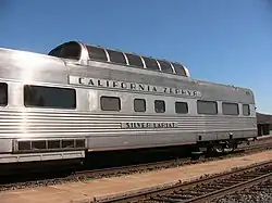 The former California Zephyr dome coach Silver Lariat en route to Oakland on the Coast Starlight at San Luis Obispo