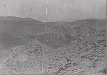 The country on the eastern side of the Judean Hills falls into the Jordan Valley in a confused mass of rocky ridges and deep narrow valleys.[13] All the main wadis run from west to east; often with steep high banks, while the tributaries joined from all directions, breaking up the ridges making the hills, almost impossible to cross. Most tracks ran along the narrow beds of ravines where progress had to be made in single file. Further north at Jebel Kuruntul (also known as Jebel Quruntul, the Mount of Temptation and Mount Quarantania) the mountains end abruptly in a 1,000-foot (300 m) cliff.[14][15] Sometimes the attacking parties had to haul themselves and each other over abrupt cliffs to be in a position to fight at close quarters at the top.[16] Yet, in early Spring, the area was covered by wild flowers including cyclamen, anemones, poppies and tulips.[17]