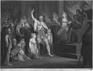 ![]() Caractacus before the Emperor Claudius at Rome, 18th-century print, artist unknown (British Museum) | |