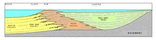 The depositional profile of T-type carbonate platforms can be subdivided into several sedimentary environments.[1]