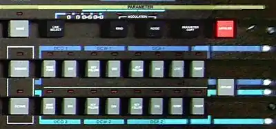 The DCA (which determined how loud a given oscillator was at a given moment) was also modulated by another dedicated 8-stage envelope generator. The DCW and DCA also had a "key follow" feature; which determined how much higher notes affected a sound, making the DCW have a more dull sound with less harmonics with higher notes, and making the DCA envelope faster for higher notes.