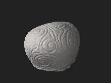 The Castlestrange stone is located in the grounds of "Castlestrange House" near Athleague in County Roscommon, Ireland. It is a granite boulder decorated with flowing spirals in the La Tène style, dating from the Iron Age period between 300 BC and 100 AD.
