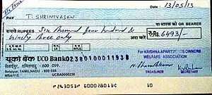 44. "India at the bottom of the list: Least reduction in usage of bank cheques". 5 June 2019. Retrieved 18 December 2022.