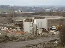 The southern end of the canal in Chesterfield is being redeveloped as part of a £300 million project called Chesterfield Waterside. This will provide housing and amenities in an area which is currently derelict land. The project involves the creation of a short length of new canal to create an island in the centre of the site, navigation being restored to a length of the river, and a new basin at the southern edge of the site. Funding for the canal work was provided by a grant of £500,000 from the East Midlands Development Agency.[55] The basin was completed and was opened in October 2009, although it remains isolated from the River Rother, to which it will be connected by a lock, while a back-pumping facility will supply it with water. Outline planning permission for the whole site was granted on 15 March 2010.[56] In April 2012, the project was awarded a £2.4 million grant by the Sheffield City Region Local Enterprise Partnership Board. The funding was for the connecting lock and the provision of sewers and access roads, to facilitate the subsequent development of the 62-acre (25 ha) site.[57]