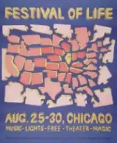 Protests against the war continued,[4] and Rennie Davis and Tom Hayden became directors of the Mobe office in Chicago.[1]: 1–2 A counterculture group known as Yippies, including Jerry Rubin and Abbie Hoffman, also planned a "Festival of Life", announced at a press conference on March 17,[5] as a response to what they described as the Democratic "Convention of Death".[1]: 2 [4] In January, the Yippies had issued a statement that included: "Join us in Chicago in August for an international festival of youth music and theater ... Come all you rebels, youth spirits, rock minstrels, truth seekers, peacock freaks, poets, barricade jumpers, dancers, lovers and artists ... We are there! There are 500,000 of us dancing in the streets, throbbing with amplifiers and harmony. We are making love in the parks ..."[4][2] In a March meeting at Lake Villa, Illinois, coordination of demonstrations was discussed by representatives from various groups; Hayden and Davis drafted a proposal that included "the campaign should not plan violence and disruption against the Democratic National Convention. It should be nonviolent and legal."[1]: 2 [2]